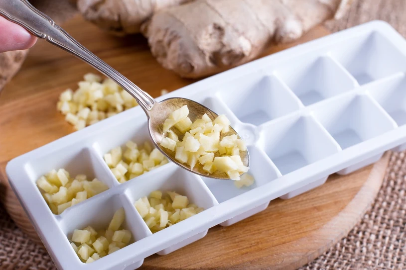 Jeżeli kupiłeś imbir na zapas, jak najbardziej możesz przedłużyć jego świeżość poprzez mrożenie. Wystarczy obrać go ze skórki, drobno pokroić, np. w kosteczkę, lub zetrzeć na tarce, a następnie zamrozić w małych porcjach. Możesz wykorzystać do tego małe pojemniki, worki strunowe, świetnie sprawdzą się do również specjalne pojemniki do lodu. Tak przygotowany imbir może być przechowywany w zamrażalniku nawet do kilku miesięcy.