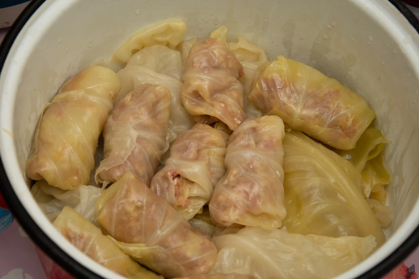 - Kapusta - sparz kapustę w dużym garnku z wrzącą wodą, aż liście zaczną odchodzić. Ostudź je i odetnij twarde części.