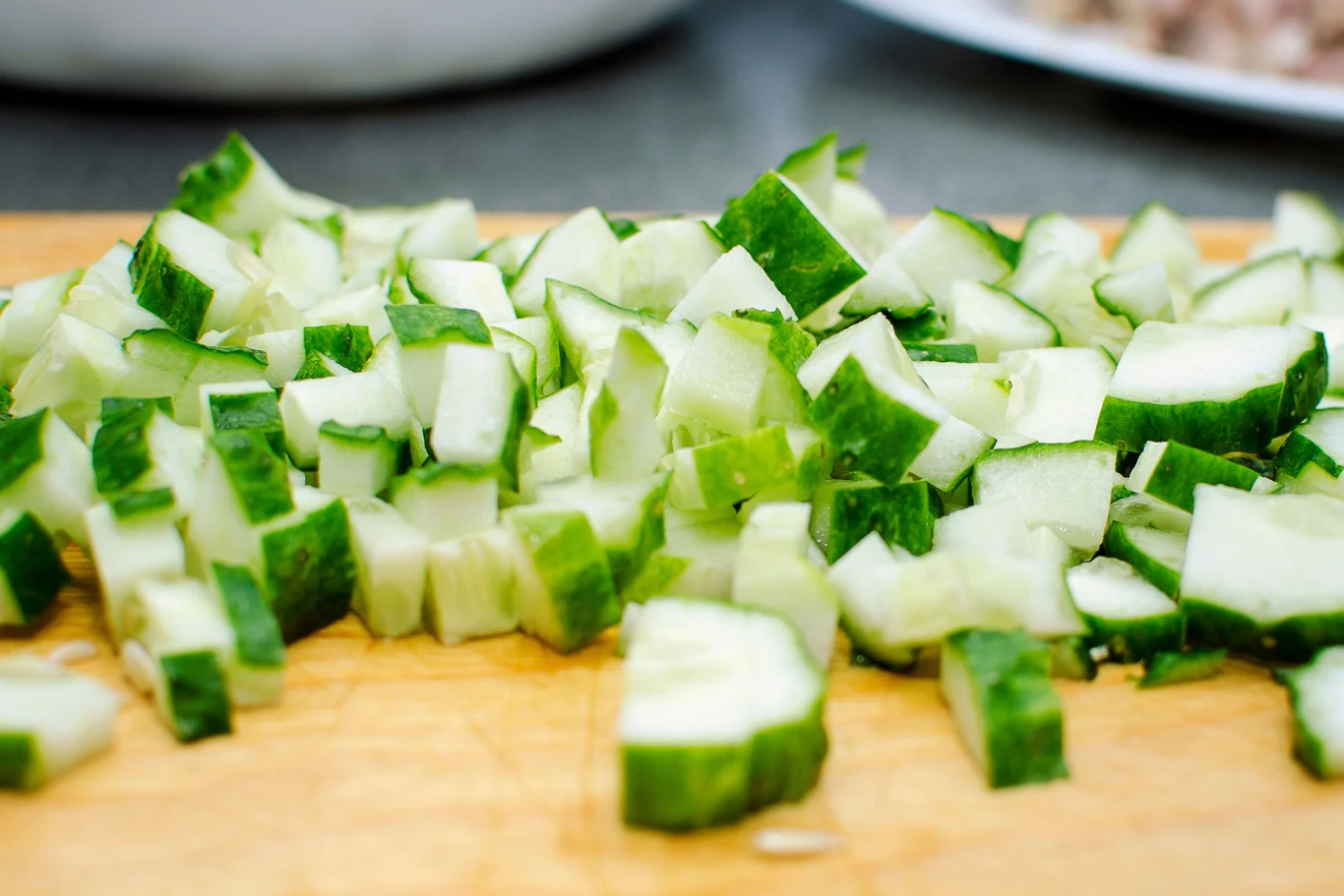 Rozbijanie zamiast krojenia. Technika znana z kuchni chińskiej (pai huang gua). Zamiast kroić ogórka nożem, połóż go na desce i uderz płaską stroną noża lub dnem garnka, aż pęknie na nieregularne kawałki. Rozerwane włókna lepiej wchłaniają marynaty, sosy i przyprawy niż gładkie, równe plastry. To dlatego rozbity ogórek w azjatyckiej sałatce smakuje tak wyraziście, mimo że składników jest niewiele.