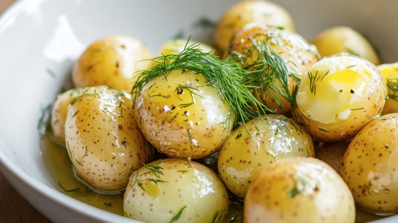 Z czym podać młode ziemniaki? Absolutna klasyka to masło i koperek. Odcedzone ziemniaki wrzuć z powrotem do gorącego garnka, dodaj kawałek masła i garść posiekanego koperku, zamknij pokrywą na minutę i delikatnie wymieszaj. Masło rozpuści się w parze i otoczy każdego ziemniaka.