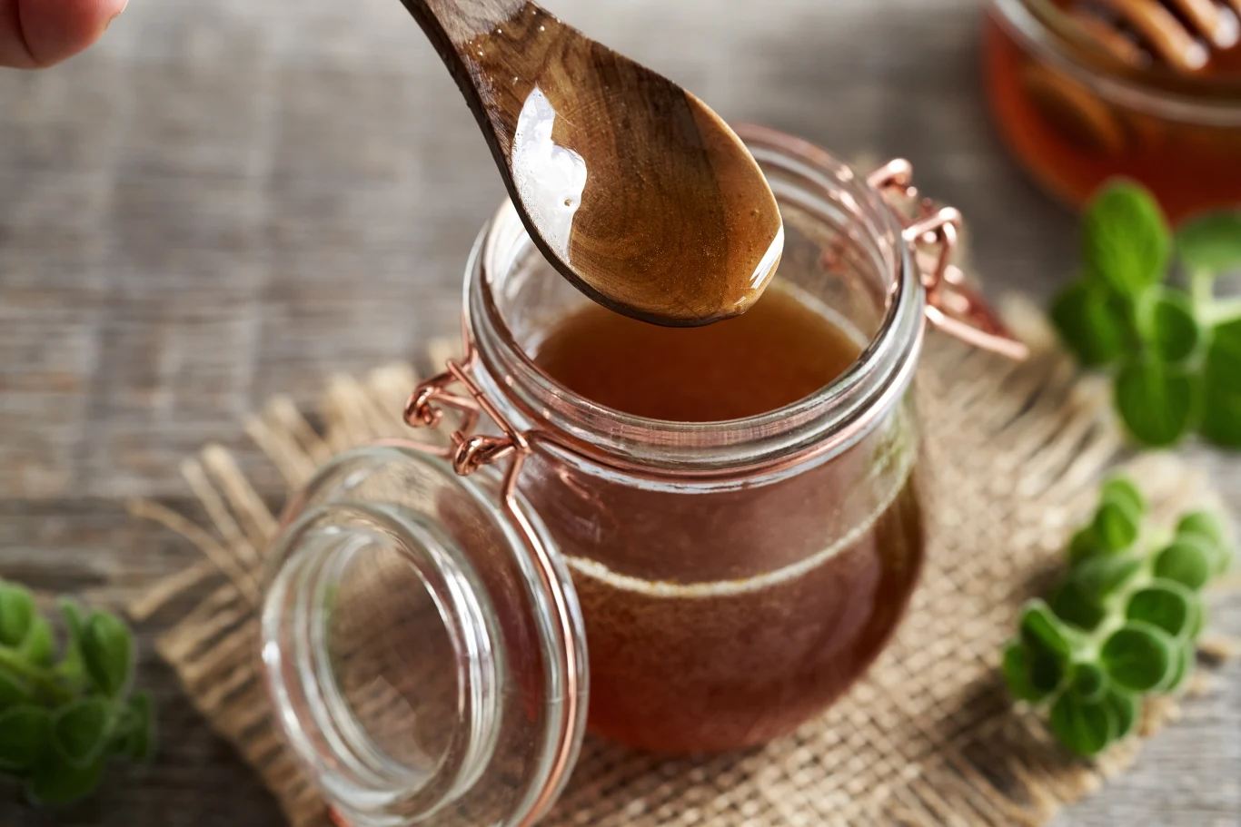 Do jeszcze ciepłego, ale niegorącego płynu dodaj trzy łyżki miodu i dokładnie wymieszaj. Napar powinien mieć temperaturę poniżej 40 stopni Celsjusza, by miód nie stracił swoich właściwości zdrowotnych.