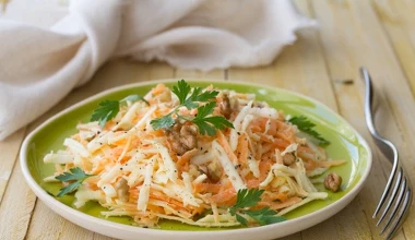 Ścieram na tarce jabłka, marchewki i chrzan, dorzucam cukier i śmietanę. Najlepsza surówka do niedzielnego obiadu