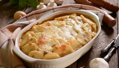 Rodzina rezerwuje dokładkę, zanim skończę kroić wszystkie porcje. Zapiekanka mięsno-grzybowa