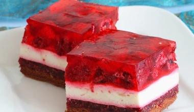 Śmietankowy krem z galaretką i musem malinowym. Letnie ciasto idealne na weekend