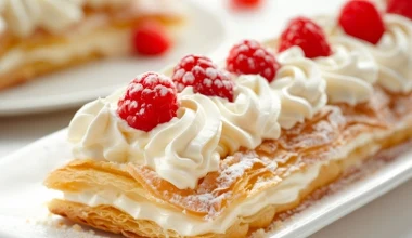 Ciasto francuskie, delikatny krem i maliny. Oto wyborna napoleonka z bitą śmietaną