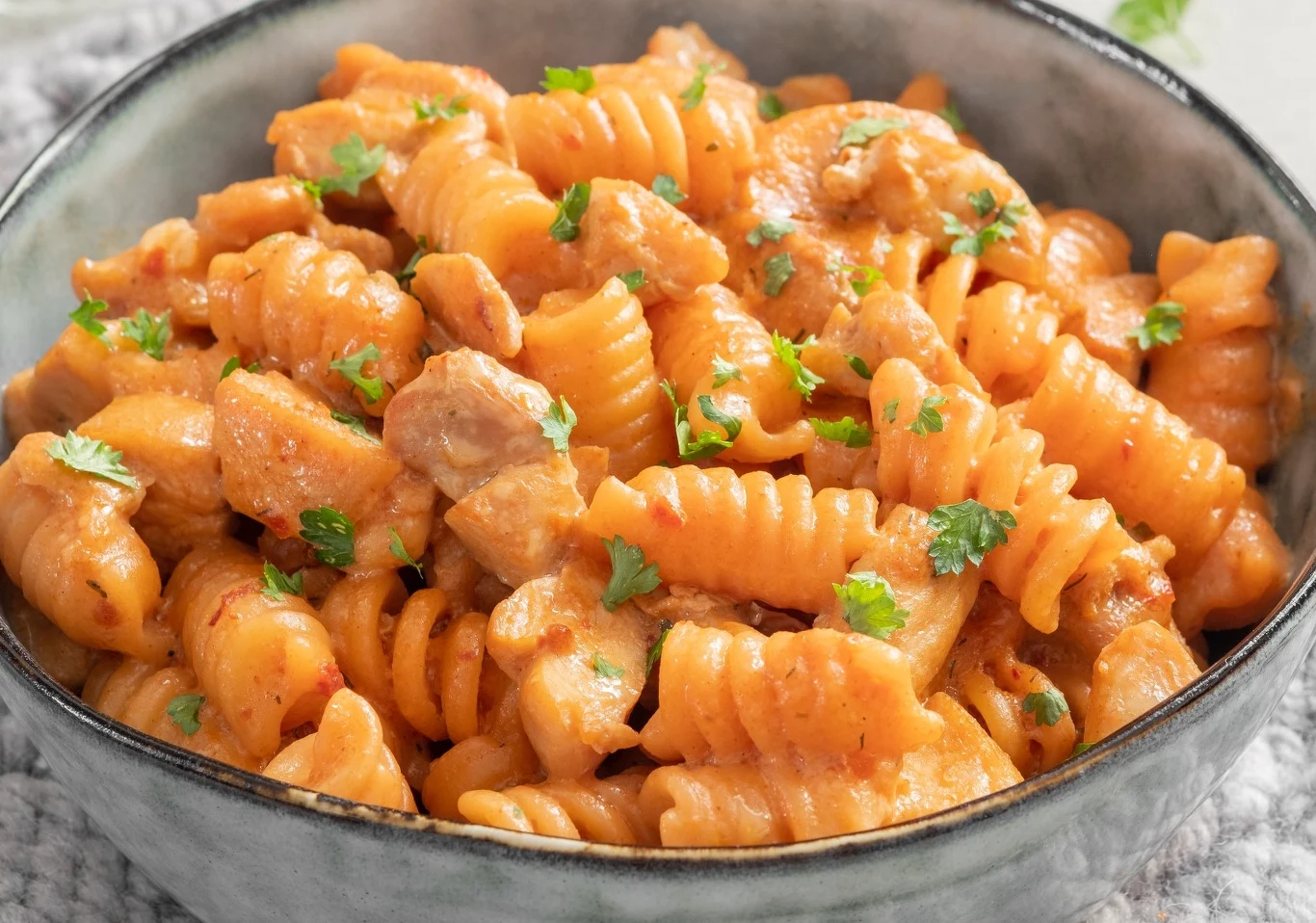Są takie dni, że czasu na zrobienie obiadu jest niewiele, wtedy takie szybkie przepisy ratują sytuację. Makaron z kurczakiem i sosem pomidorowym to zawsze dobry pomysł na sycące danie.