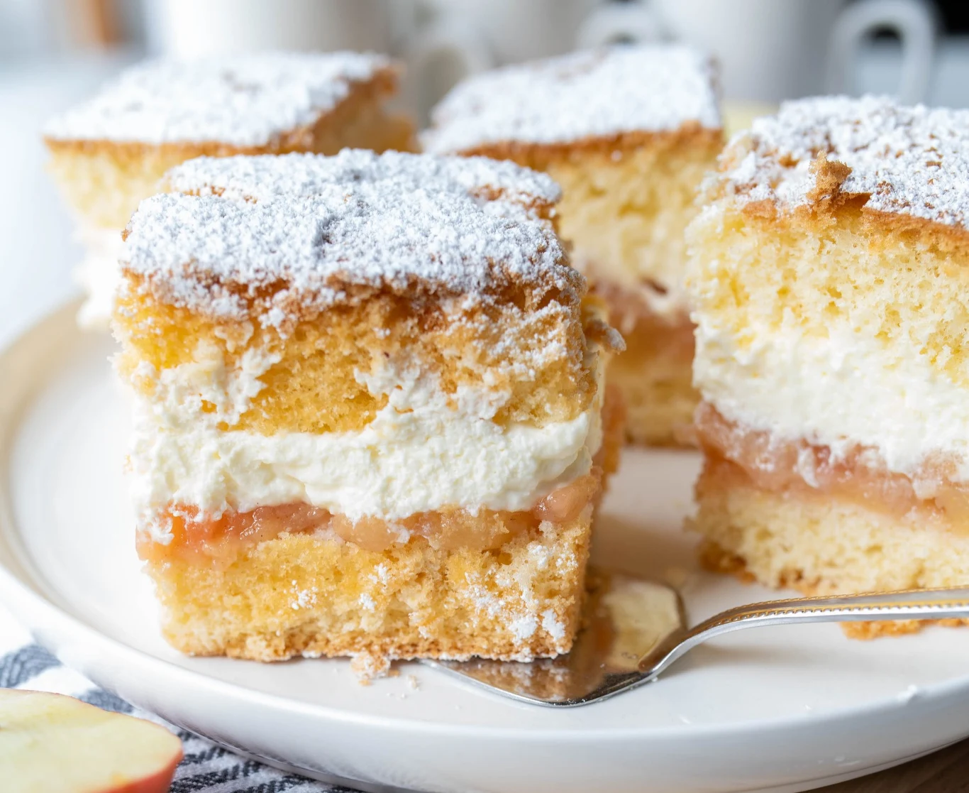 Biszkopt z jabłkami i bitą śmietaną - przepis
