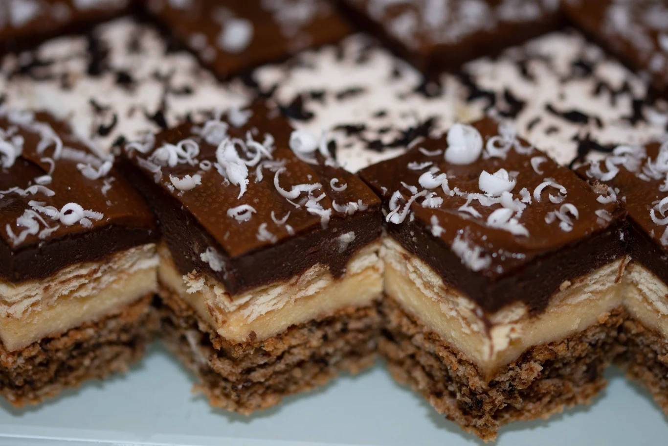 Opolanka to pyszne ciasto, które możesz przygotować na każdą uroczystość. Składa się z orzechowego biszkoptu, pysznego kremu budyniowego z kokosową nutą i obłędnej polewy czekoladowej. Za chrupiący element deseru odpowiedzialne są orzechy i herbatniki. Jeśli chcesz wzmocnić różnorodność ciasta, zamień warstwę herbatników na posiekane batoniki Snickers, Mars lub Kinder Bueno.