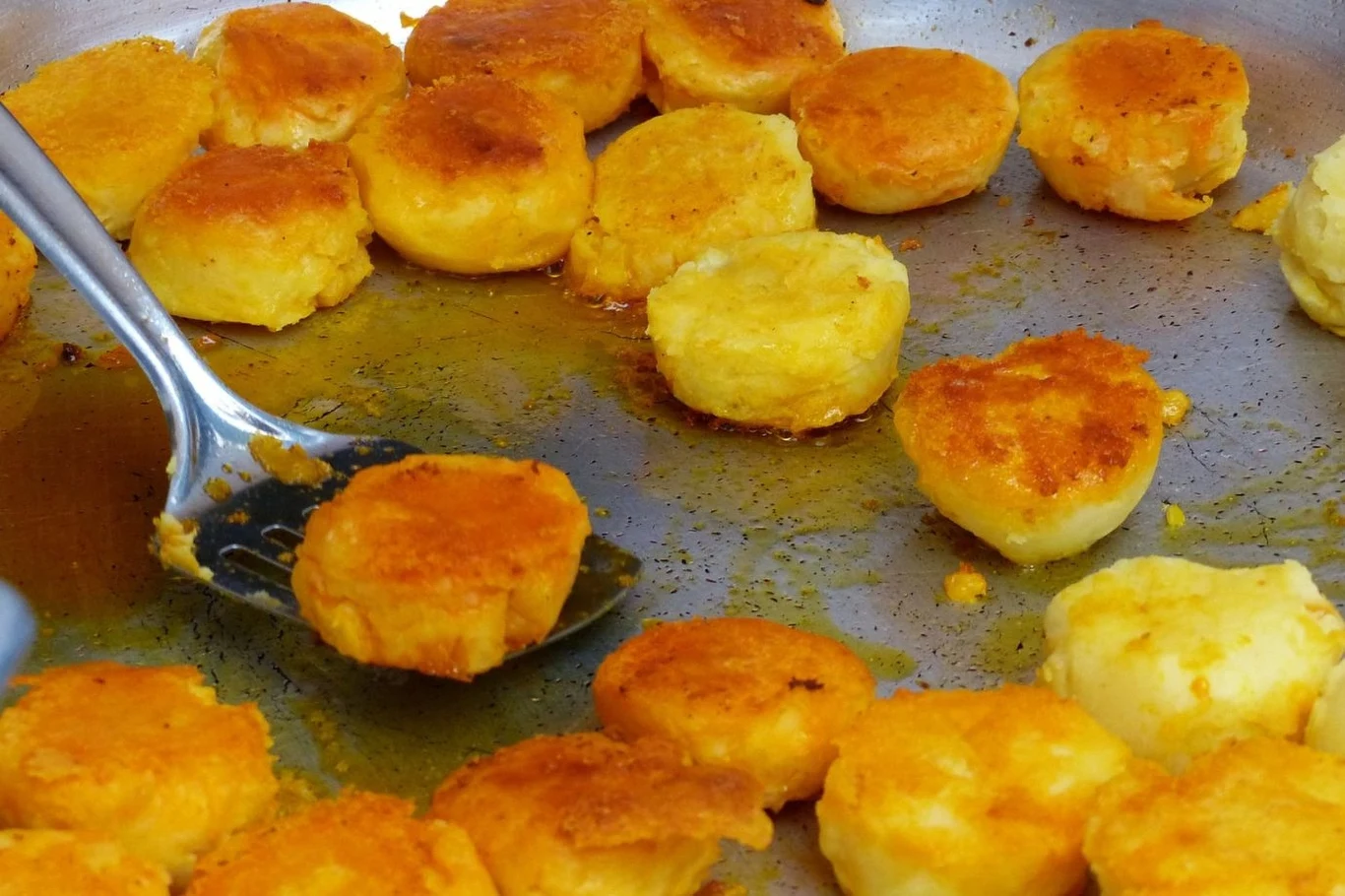 Smażone talarki z ziemniaków są rozkosznie chrupiące oraz dobrze doprawione. Przez to doskonale smakują same oraz jako dodatek do obiadu. Możemy potraktować je jako przekąskę, która sprawdzi się na imprezy lub jako zamiennik klasycznych ziemniaków z wody do obiadu.