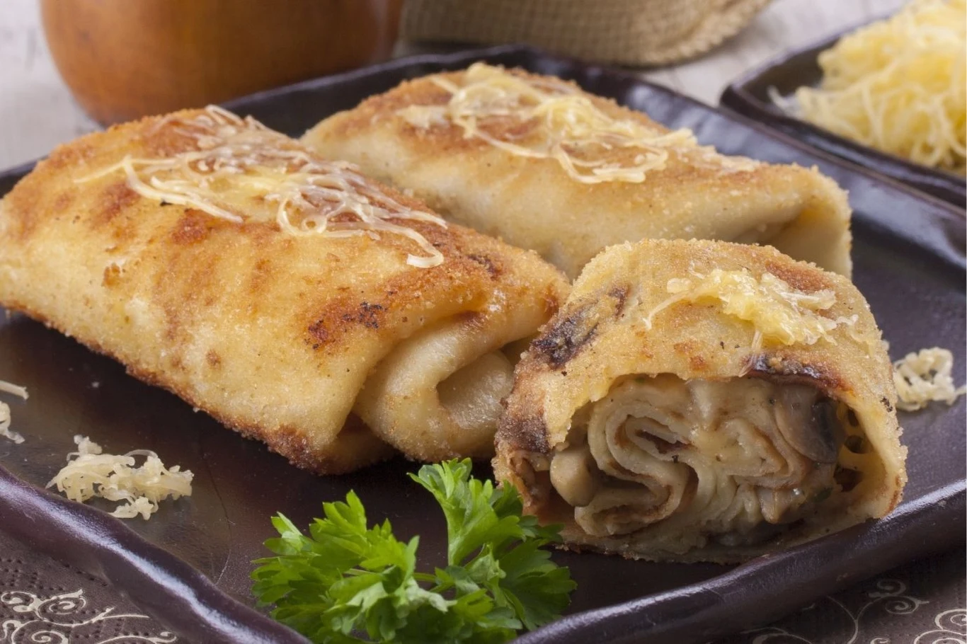 Na każdy naleśnik nakładamy łyżkę farszu i zawijamy jak krokiety. Następnie kładziemy na patelni i podsmażamy z każdej strony przez kilka minut.