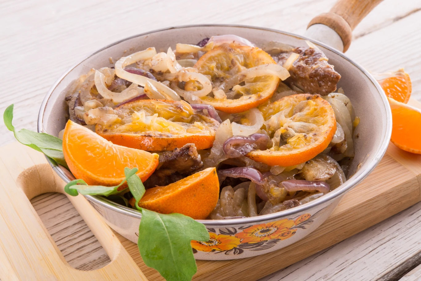 Wiele osób nie przepada za podrobami ze względu na ich metaliczny posmak. To cena wysokiej zawartości żelaza. Dlatego proponujemy przepis na wątróbkę cielęcą z pomarańczami, który eliminuje ten problem. Kwaskowość owocu przełamuje charakterystyczny smak podrobów, dzięki czemu potrawa jest łagodniejsza i bardziej soczysta. Witamina C z cytrusów dobrze wpłynie na wchłanianie żelaza.