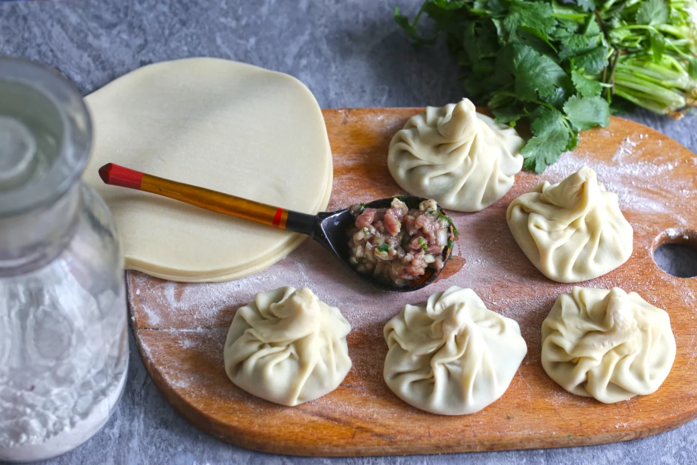Podstawą gruzińskich pierogów jest oczywiście ciasto, jego wykonanie jest bardzo proste, będziesz potrzebować jedynie mąki, wody oraz soli. Na farsz składa się dobrej jakości mielone mięso, które należy odpowiednio doprawić, świetnie pasować będzie tu mielony kminek, zielona cebulka, oraz świeża kolendra, nie może zabraknąć również soli i pieprzu.