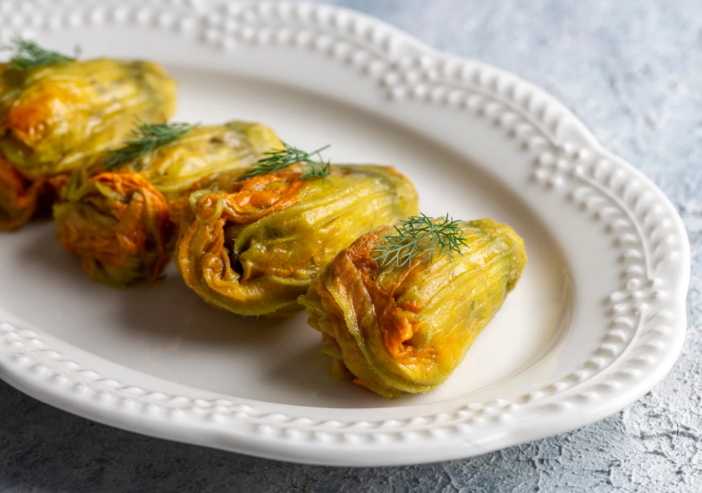 Kwiaty cukinii delikatnie umyj pod bieżącą wodą i osusz na ręczniku papierowym. Pozbądź się pręcików i zielonych części.