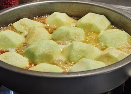 Podgrzewaj całość, aż uzyskasz brązowy i aromatyczny karmel, mieszając od czasu do czasu. Zdejmij formę z ognia i odstaw.