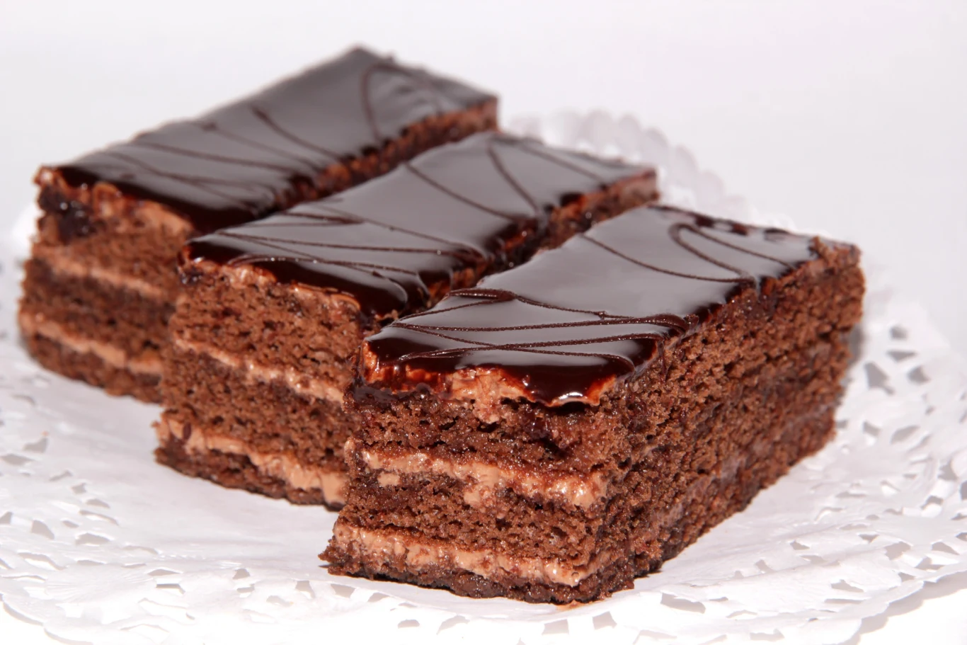 Formę o wymiarach 30x40 cm wyłóż papierem do pieczenia. Przelej do niej masę i wstaw do piekarnika rozgrzanego do 170 st. Celsjusza. Piecz ciasto przez 25-35 minut lub do suchego patyczka. Wyjmij je, ostudź i podziel na 3 blaty.