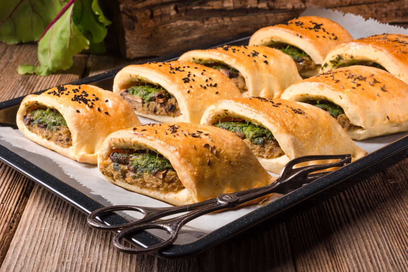 Jeśli szukasz przekąski, którą można wcinać samodzielnie, lub podać do gorącego barszczu, paszteciki z fasolą, pieczarkami i szpinakiem sprawdzą się idealnie. To przystawka, która przypadnie do gustu w szczególności osobom na diecie wegetariańskiej. Pyszne drożdżowe ciasto i wyrazisty farsz ze szpinaku, fasoli, pieczarek z dodatkiem czosnku i parmezanu sprawią, że ten wytrawny wypiek zasmakuje nawet miłośnikom mięsa.