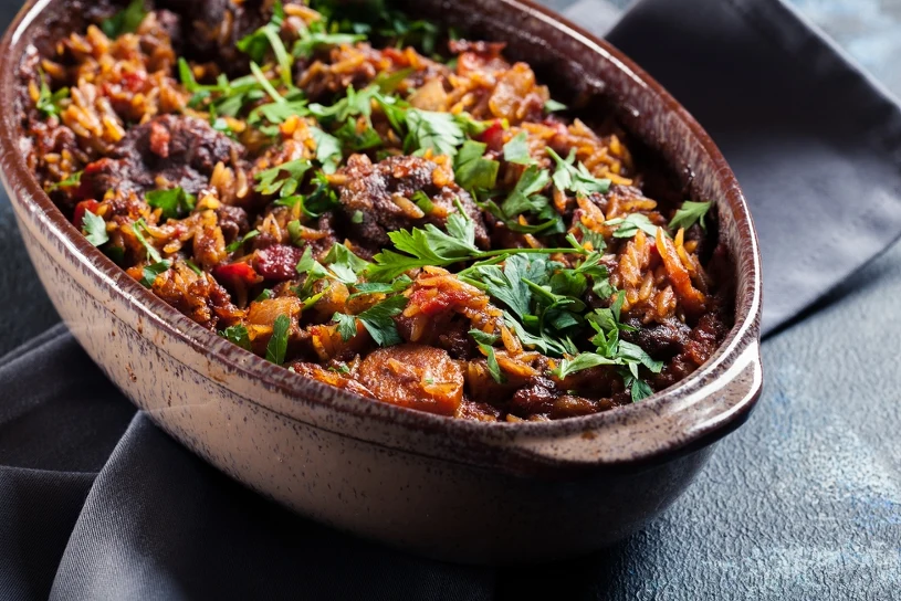 Zapiekanka ryżowa gyros to danie inspirowane tradycyjną kuchnią grecką, a konkretnie potrawą Giouvetsi. Wbrew tradycyjnej recepturze, do naszej zapiekanki zamiast makaronu orzo użyjemy, znacznie łatwiej dostępnego w naszym kraju ryżu o długich ziarnach.