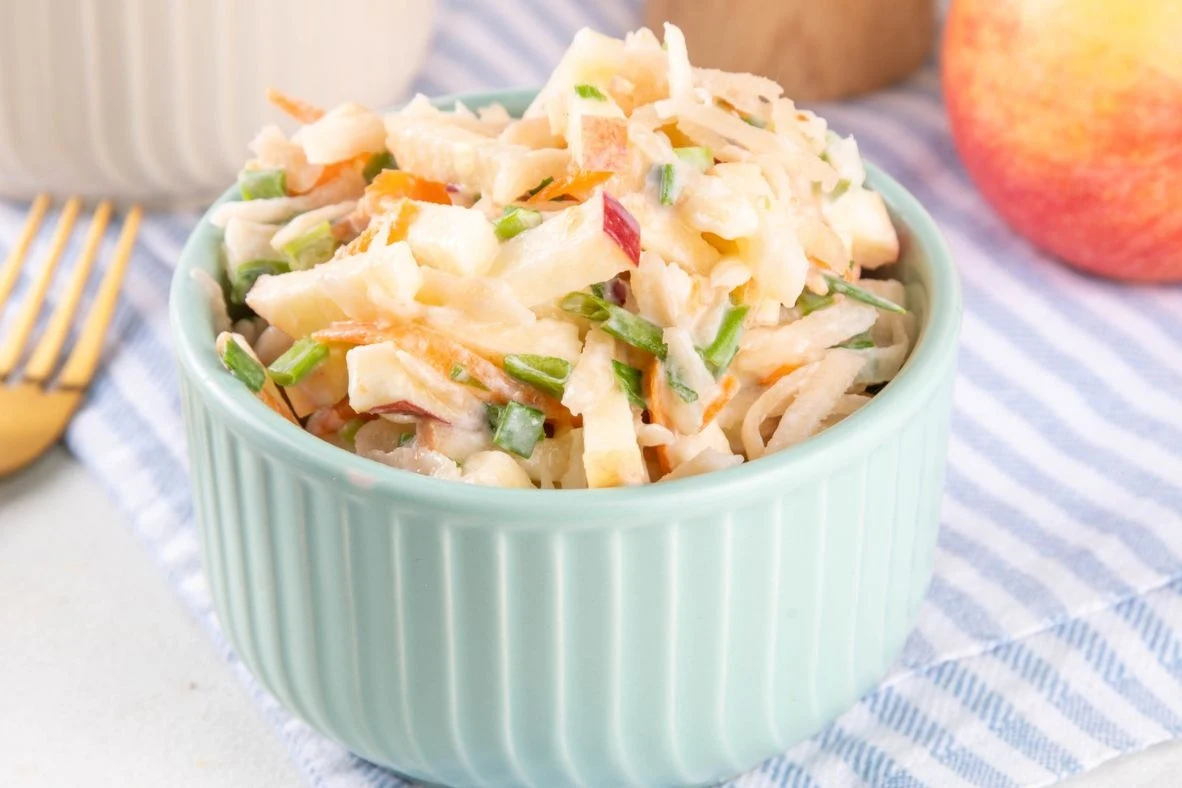 Połączenie młodej kapusty, marchewki, jabłka i szczypiorku daje lekką, chrupiącą i niezwykle odświeżającą propozycję, która wzbogaci każdy posiłek. To również rewelacyjny sposób na włączenie sezonowych warzyw do codziennego jadłospisu.