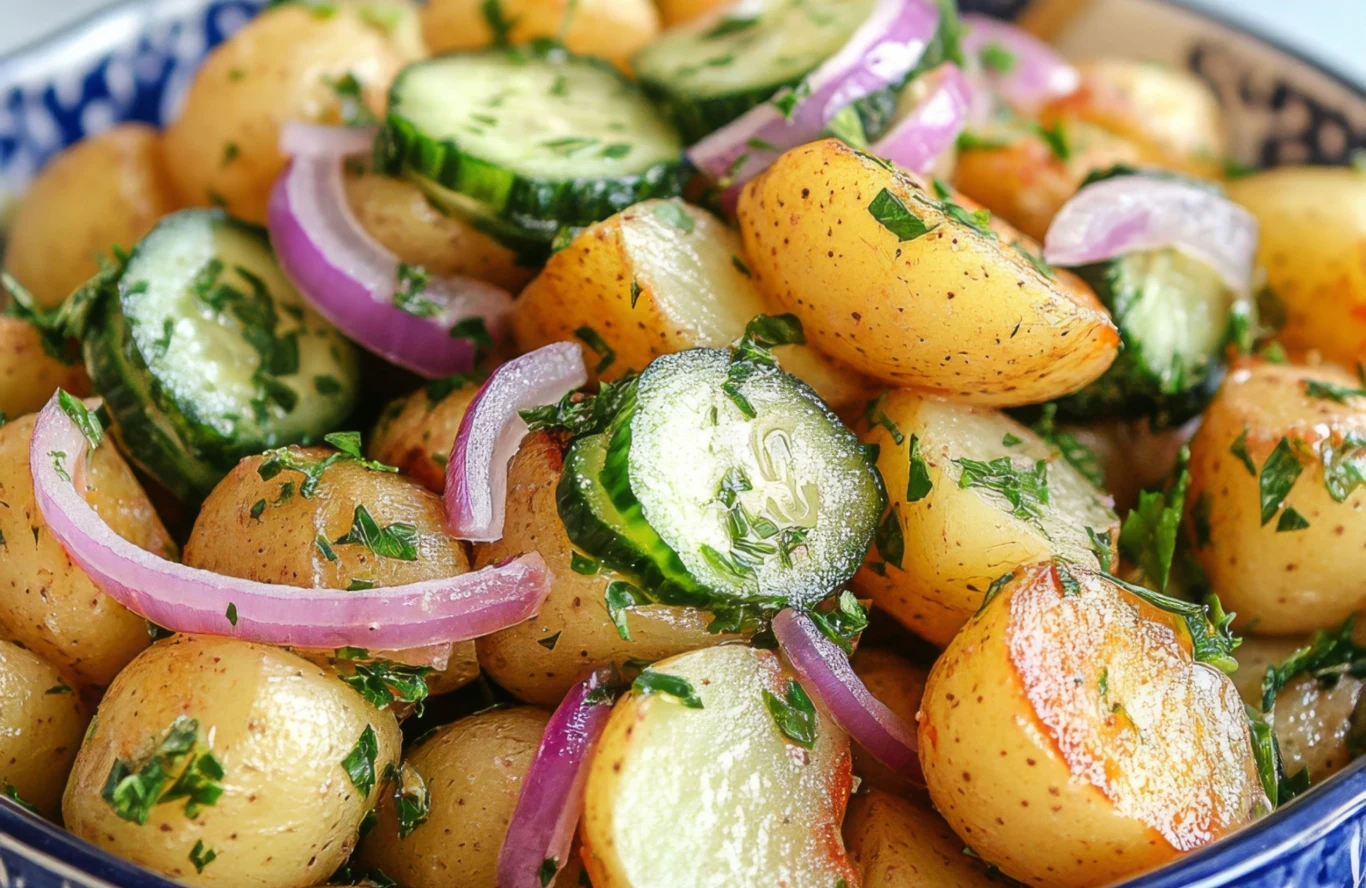 - Przepis na sałatkę z młodych ziemniaków i ogórków małosolnych