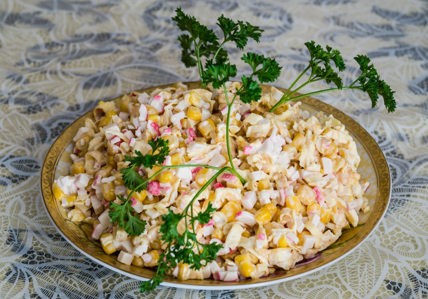 Sałatka karnawałowa z jajkami, kukurydzą i paluszkami