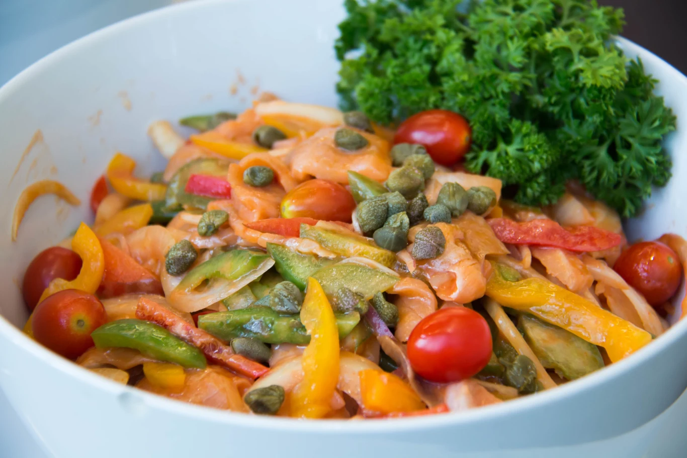Przepis na sałatkę z łososiem i kaparami