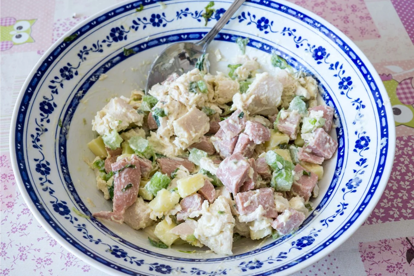 Sałatka z szynką i awokado to pyszne, kremowe połączenie, które świetnie sprawdzi się na kolację, lunch lub jako imprezowa przystawka. Delikatne awokado łączy się tu ze słodkimi gruszkami w syropie, miękkim serkiem kanapkowym (lub delikatnym żółtym) i lekką szynką drobiową, tworząc zbalansowany smak. Całość dopełnia dressing na bazie majonezu, soku z cytryny i przypraw oraz szczypiorek. Dzięki temu sałatka jest świeża i aromatyczna. Warto ją jeść, bo dostarcza zdrowych tłuszczów z awokado, jest sycąca i jednocześnie lekka. A do tego smakuje naprawdę wyjątkowo - słodko-słona, kremowa i pełna różnorodnych aromatów. Idealna na każdą okazję.