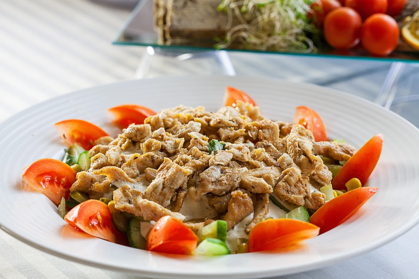 Sałatka gyros-kebab to jedna z najczęściej serwowanych przekąsek na przyjęciach. Łączy w sobie lubiane przez Polaków składniki, a do tego jest naprawdę sycąca. Występuje w dwóch wariantach - produkty mogą być w niej ułożone warstwowo (co prezentuje się elegancko) albo po prostu ze sobą dobrze wymieszane (aby aromaty dobrze się przeniknęły). Niezależnie od sposobu podania, w sałatce gyros-kebab powinny się znaleźć: świeże warzywa, kurczak, właściwa przyprawa i sos majonezowy. Sprawdzony przepis na kultową przystawkę znajdziesz poniżej.