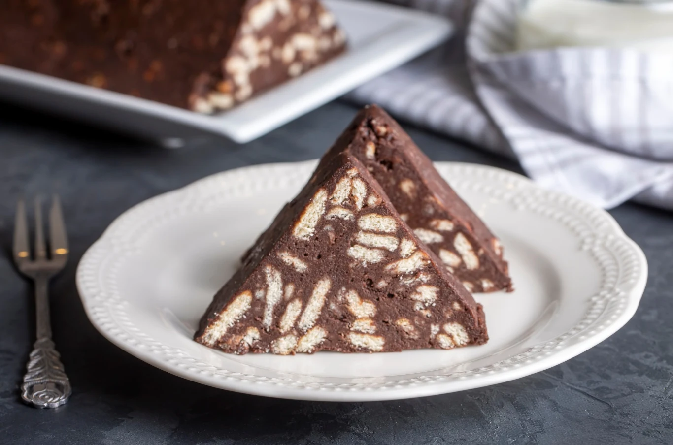 Czekoladowy blok z pokruszonymi herbatnikami to dla wielu z nas smak dzieciństwa. Taki deser przygotowywały nasze mamy i babcie w czasach PRL-u, kiedy na sklepowych półkach brakowało słodyczy, a o czekoladzie można było jedynie pomarzyć. Miło jest czasem wrócić do zapomnianych smaków, zwłaszcza że w niczym nie ustępują powszechnie dziś dostępnym słodkim przekąskom. Blok czekoladowy możesz przygotować w keksówce. By dodać mu nieco finezji, użyj folii aluminiowej i uformuj np. graniastosłup o podstawie trójkąta. Z bloku powstanie apetyczna Czekoladowa Chatka.
