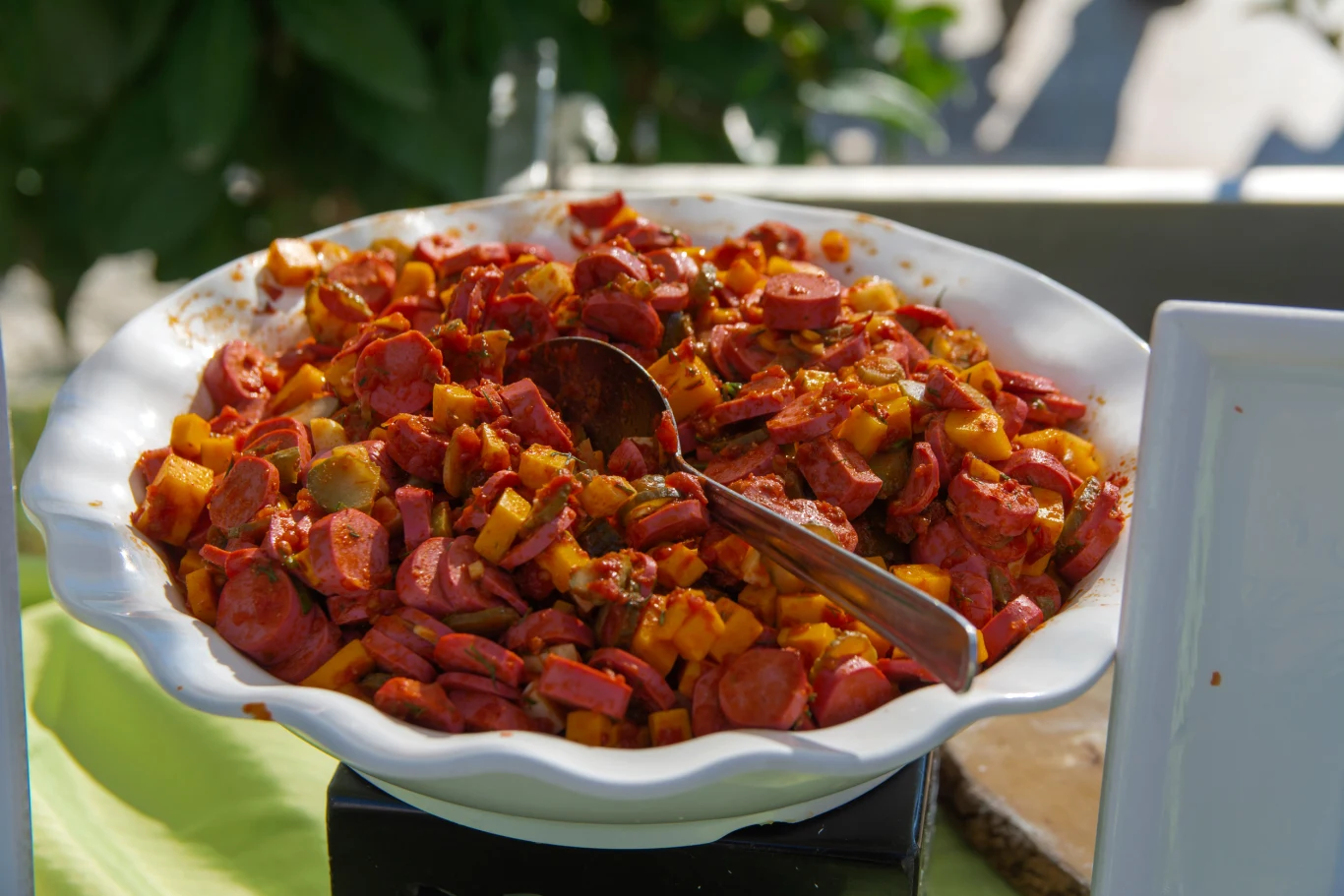Co można zrobić z frankfurterek, oprócz podgrzania ich w gotującej się wodzie? Te cienkie, wędzone kiełbaski świetnie sprawdzą się jako mięsna wkładka do kociołka cygańskiego. To pyszne, danie będzie idealne, jeśli chcesz przygotować sycący obiad na kilka dni. Świetnie sprawdzi się zwłaszcza zimą, kiedy zmarznięci wracamy do domu i mamy ochotę na coś rozgrzewającego. Potrawa łączy w sobie kolorowe papryki, aromat wędzonego boczku i pomidorowy sos pełny przypraw. Na pewno wszystkim zasmakuje i padną pytania o dokładkę.