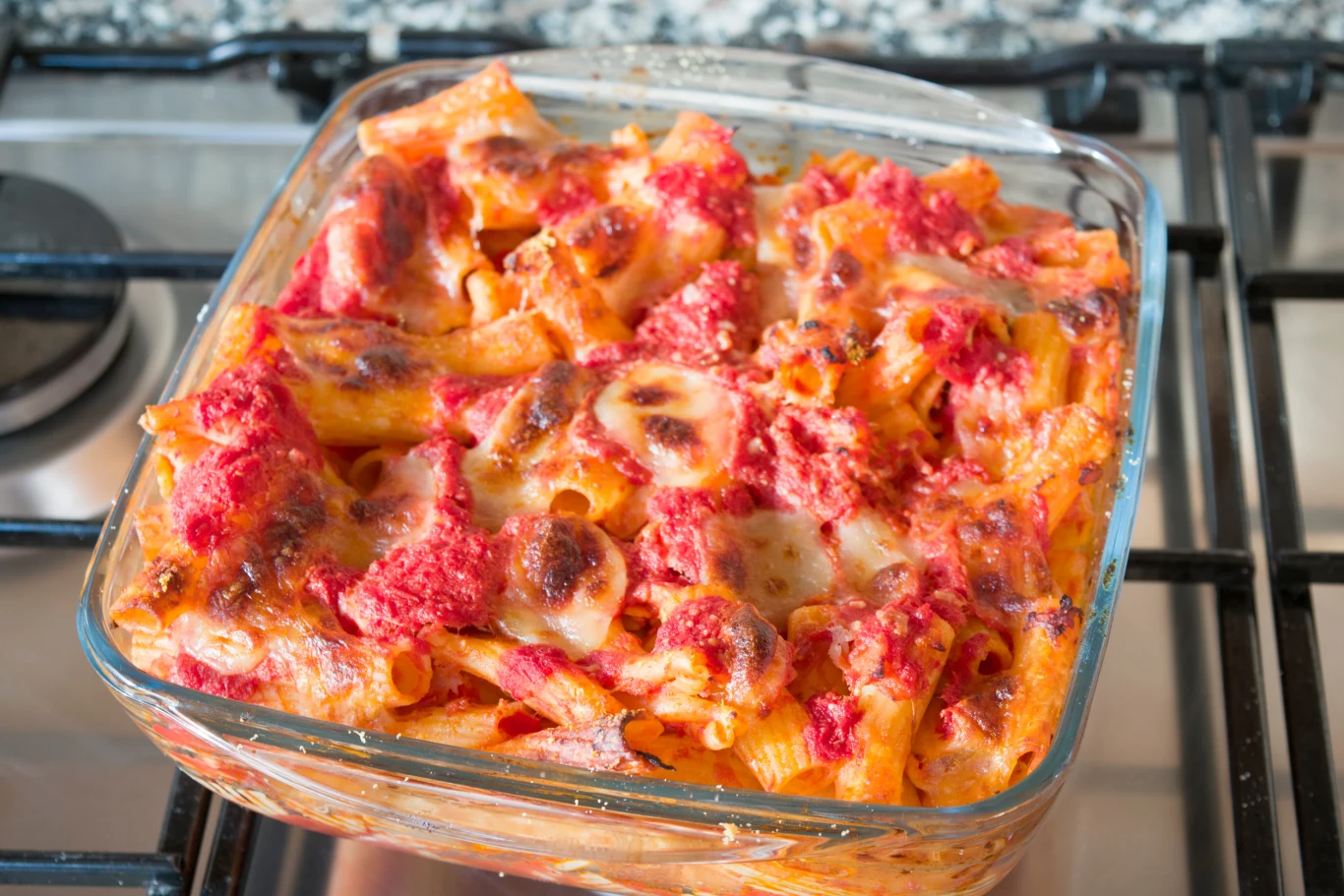Wstaw naczynie do piekarnika nagrzanego do 190°C. Zapiekaj makaron przez około 20 minut.