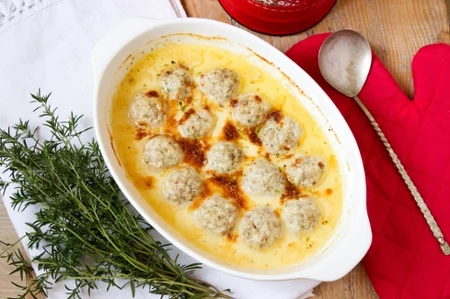 Klopsiki w kremowym sosie wstaw do piekarnika rozgrzanego do 180 st. Celsjusza i piecz przez ok. 15-20 minut. Podawaj na gorąco, od razu po przyrządzeniu.