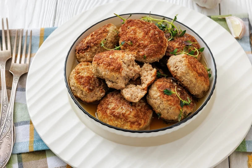 Frykadelki z indyka są znacznie lżejsze i bogatsze w białko niż klasyczne wersje z wieprzowiną lub wołowiną. Szczypta mielonych goździków dodana do mięsnej masy nadaje całości głębi smaku, co odróżnia je od zwykłych klopsików. Dodatkowo zamiast klasycznej namoczonej w mleku bułki, dodaje się tu panko. Choć ich przyrządzenie może zająć nieco czasu i wysiłku, to efekt rekompensuje każdy trud. Zrumieniona, maślana skórka świetnie kontrastuje z delikatnym i rozpływającym się w ustach wnętrzem.