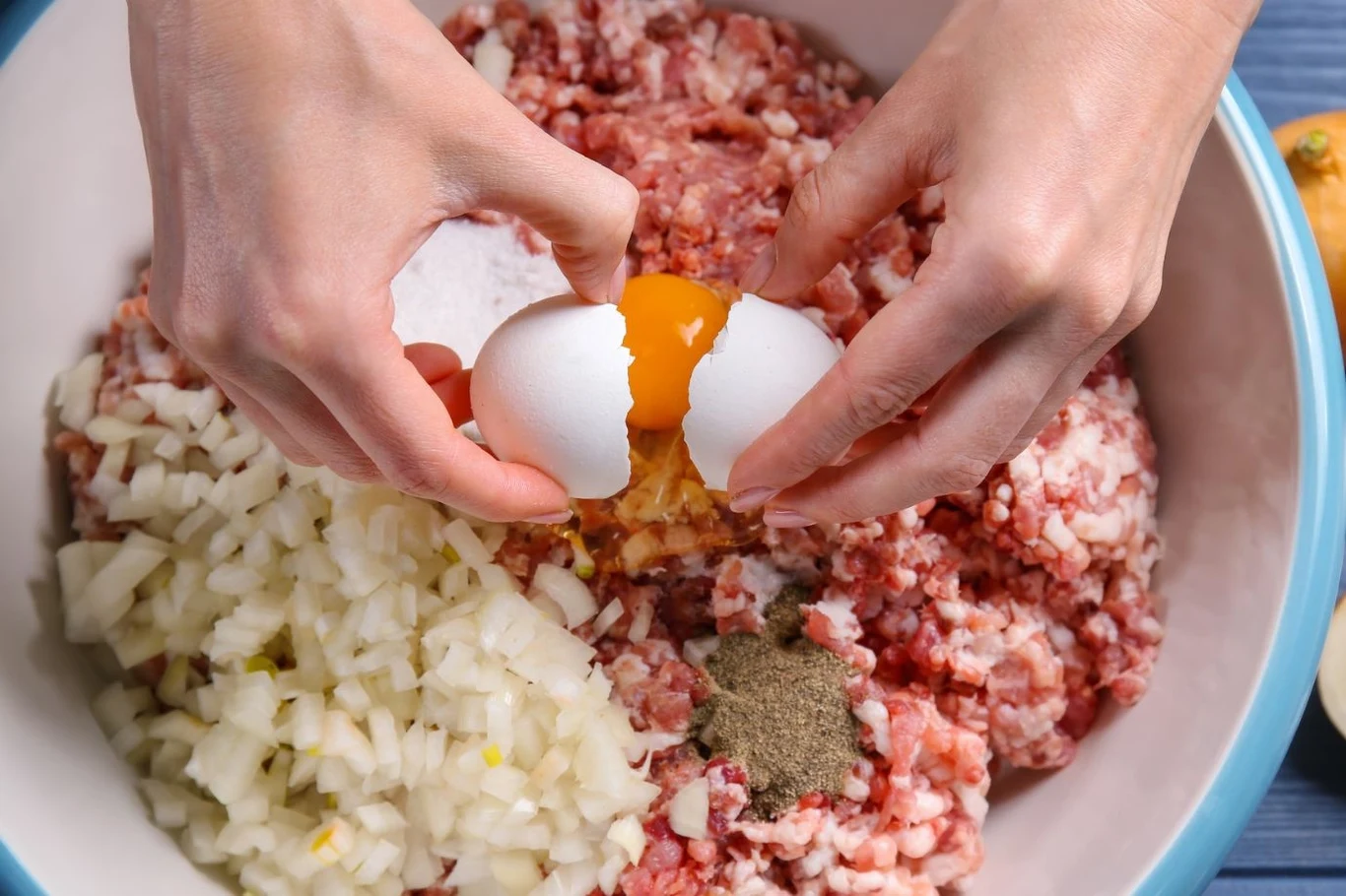 W przypadku mielonych liczy się już pierwszy etap, czyli wybór odpowiedniego mięsa. Musi być soczyste, ale nie za tłuste, żeby kotlety nie rozpadły się podczas smażenia. Chude mięso, jak polędwica czy pierś z kurczaka, często skutkuje suchymi kotletami, które po usmażeniu stają się mniej apetyczne. Tłuszcz w mięsie pełni kilka funkcji - odpowiada za smak, ale też zatrzymuje wilgoć w środku. Idealna mieszanka to ok. 70 proc. mięsa i 30 proc. tłuszczu.
