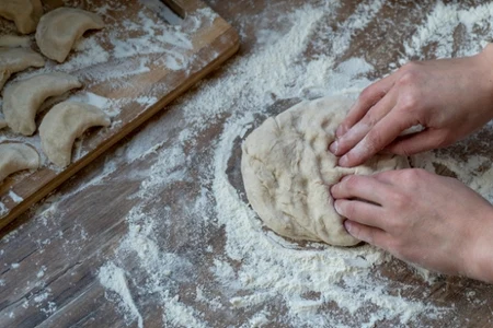 Dobrze wyrobione ciasto z samej mąki, wody, soli i odrobiny tłuszczu bez problemu utrzymuje farsz i zachowuje kształt podczas gotowania.