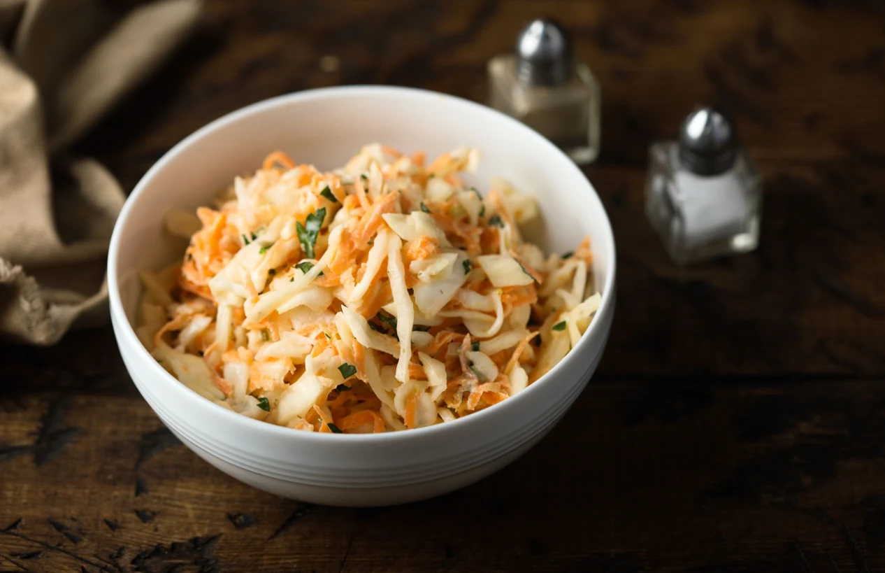Colesław od lat króluje jako idealny dodatek do różnych dań - mięsnych, rybnych, burgerów czy potraw z grilla. Jaki jest sekret popularności tej surówki? Prawdopodobnie tkwi on w prostocie. Do uzyskania smakowitego efektu wystarczy kapusta, marchewka, odrobina majonezu, octu jabłkowego, soku z cytryny i cukru.