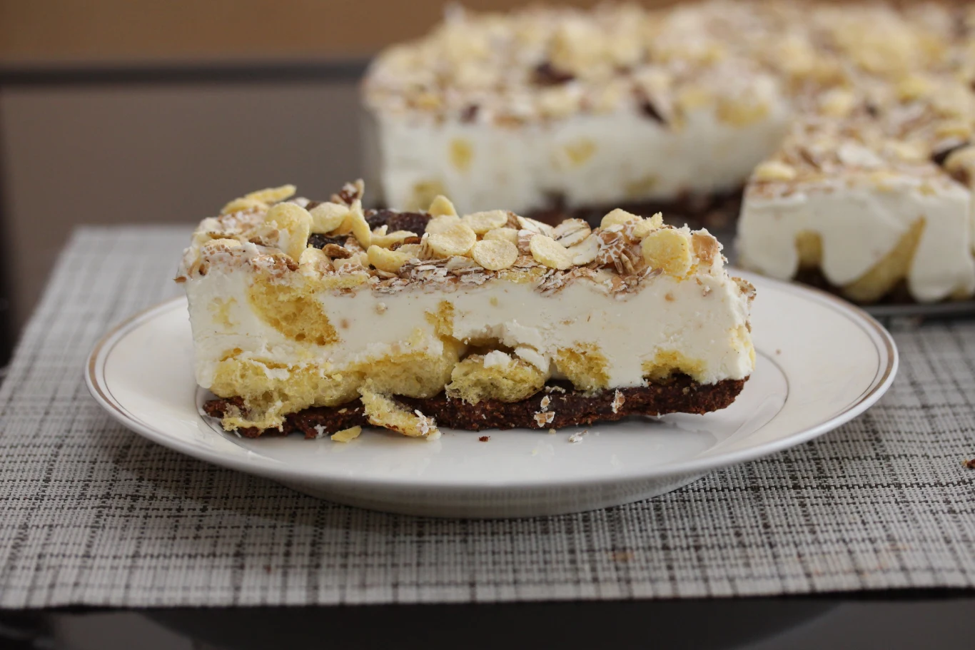 Ciasto do kawy musi być szybkie i proste w przygotowaniu - idealne, kiedy w natłoku innych obowiązków chcesz przygotować coś słodkiego - dla siebie lub niespodziewanych gości. Czekoladowy spód bez pieczenia i wyjątkowo aksamitna warstwa śmietanowa skrywają niespodziankę - chrupiące musli oraz rozpływające się w ustach biszkopty. Całość sprawdzi się o każdej porze roku i przy każdej okazji - tej mniej i bardziej formalnej.