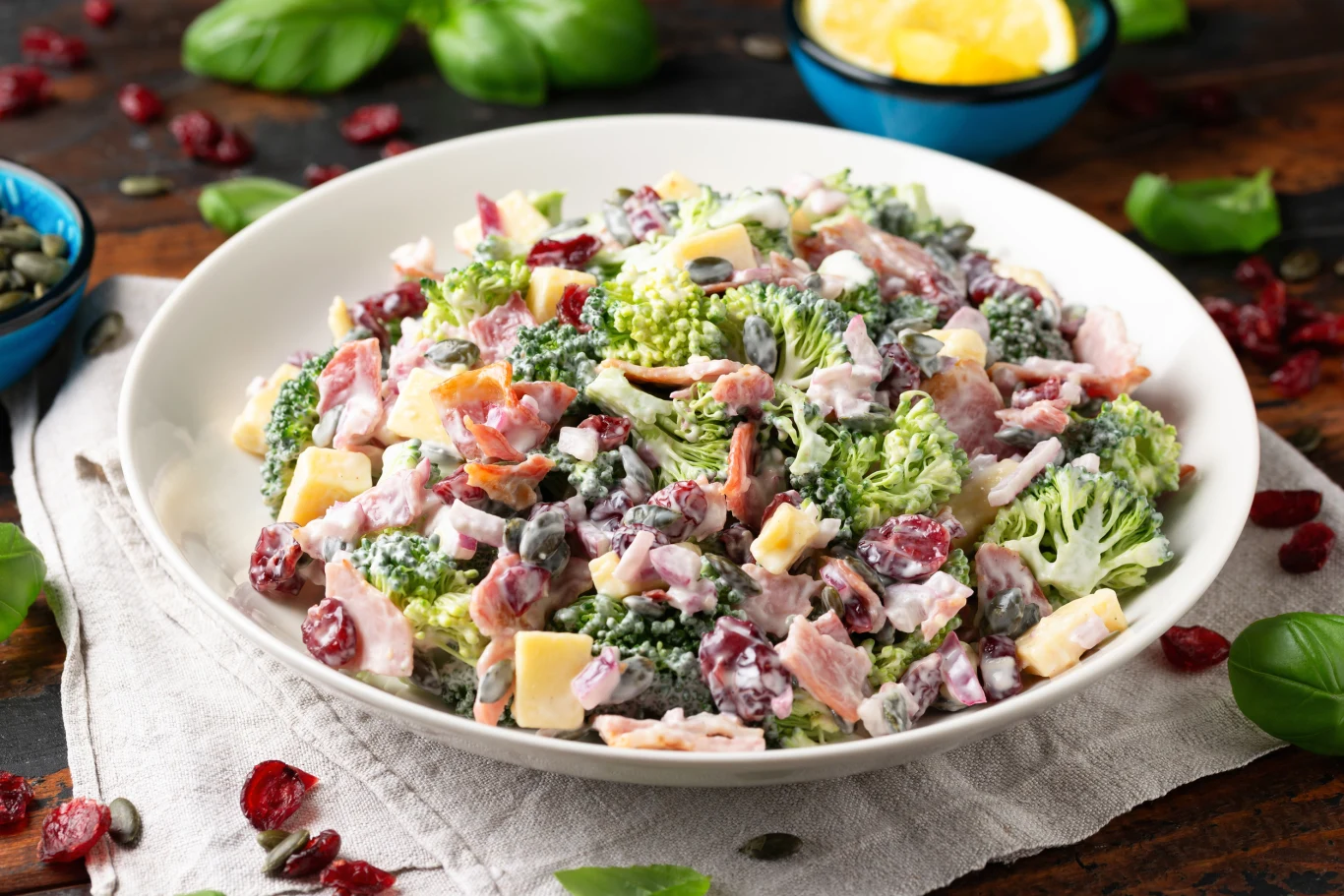 Sałatka z brokułem i sosem czosnkowym to świetna propozycja na rodzinne spotkania, imprezy w gronie znajomych, a nawet na szybki posiłek na lunch czy kolację. Idealnie ugotowane brokuły doskonale komponują się z chrupiącymi pestkami dyni, słonym boczkiem i wyrazistym, kremowym dressingiem czosnkowym. Co więcej, takie danie dostarcza sporo błonnika, witamin i minerałów. Jeśli chcesz, aby było bardziej dietetyczne, zamiast boczku możesz użyć chudej szynki z kurczaka, również będzie smakowało pysznie.