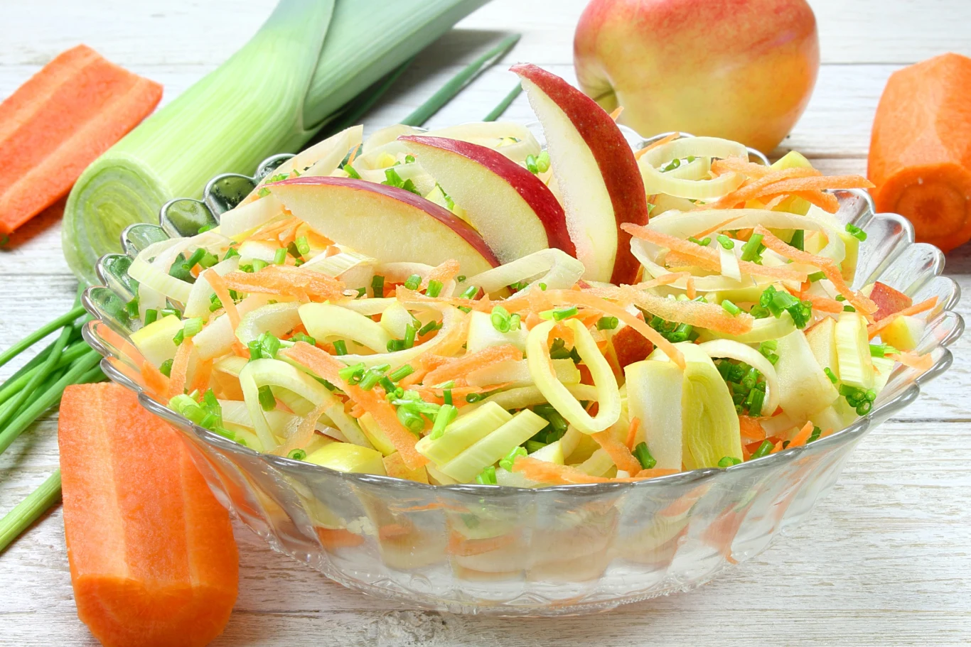 Zgodnie z wytycznymi dietetyków podstawą zdrowego jadłospisu powinny być warzywa i owoce. Ponieważ codziennie powinniśmy spożywać pięć porcji takich produktów, muszą one trafić do każdego posiłku. Mimo najlepszych chęci, by odżywiać się zdrowo, nierzadko brak nam pomysłu, jak w niebanalny sposób wplatać owoce i warzywa w codzienny jadłospis. Nie zawsze też mamy czas na przygotowania warzywnych past czy sosów. Pamiętajmy zatem, że do większości posiłków, jakie zjadamy w ciągu dnia, pasują surówki i sałatki. Szybka sałatka z pora do obiadu to doskonałe źródło wszystkich składników, których regularne spożywanie zalecają dietetycy.