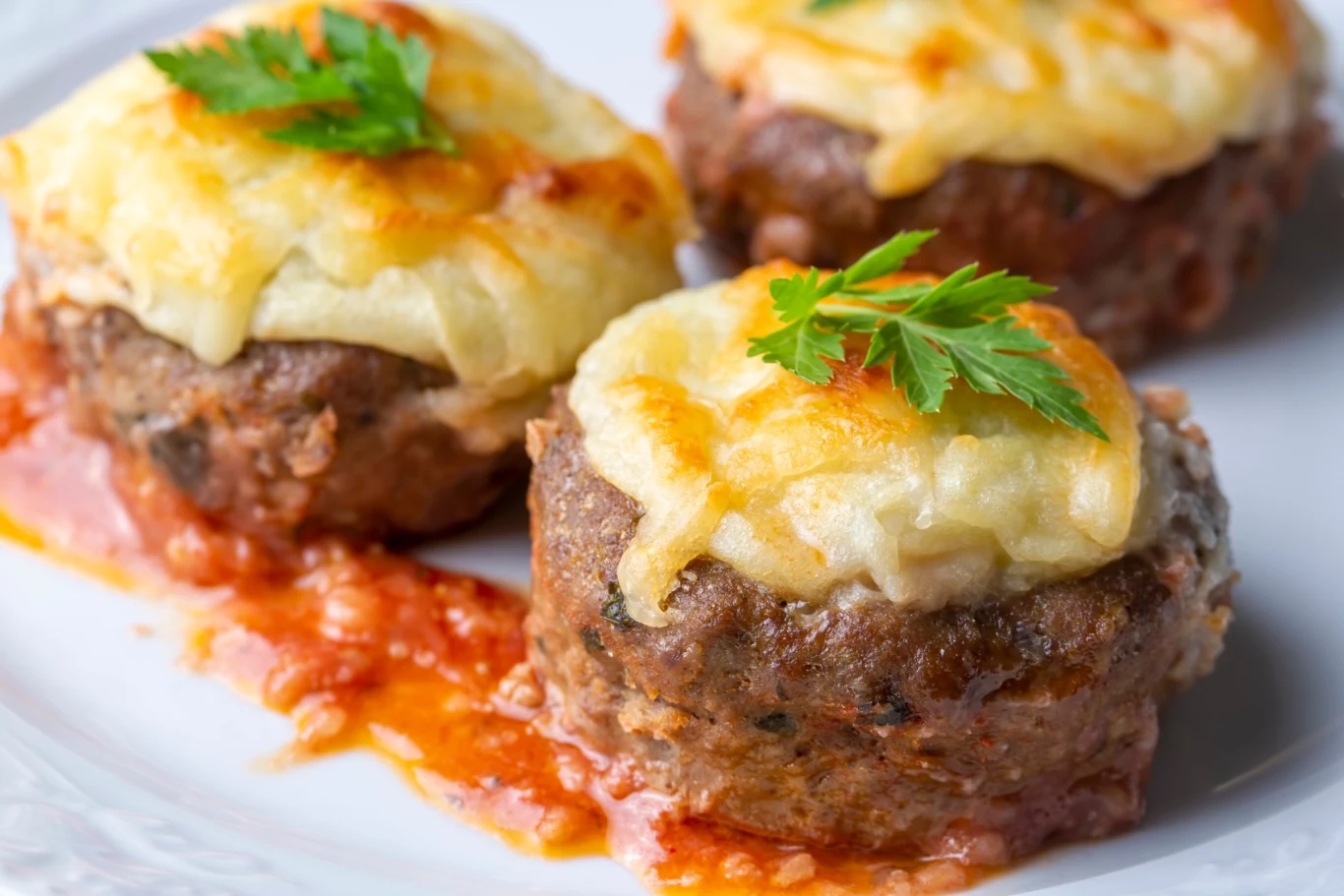 Naczynie żaroodporne wysmaruj olejem. Uformuj z mięsa kulki i układaj je jedna obok drugiej. Delikatnie dociśnij i skrop olejem. Na wierzch wyłóż serową masę. Włóż naczynie żaroodporne do piekarnika rozgrzanego do 190 stopni Celsjusza na około 30 minut do zarumienienia.