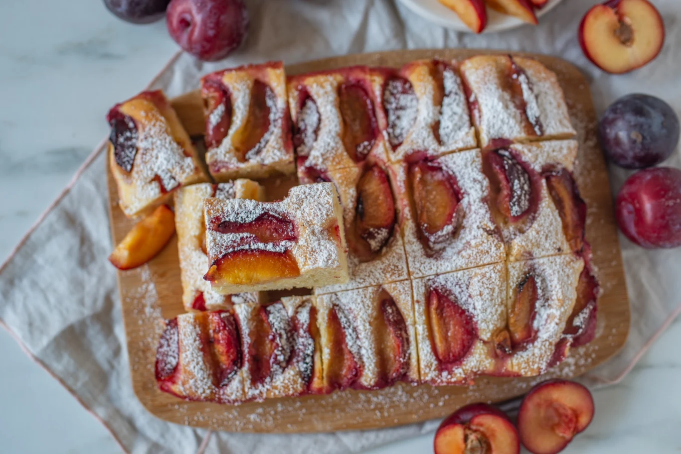 Letnie ciasto ze śliwkami to esencja sezonowego smaku. W jego skład wchodzi lekki, słodki placek biszkoptowy przełamany soczystością śliwek o delikatnie kwaśnym akcencie. Dodatek ajerkoniaku wzbogaca deser o niebanalny, głęboki akcent. W cieście użyliśmy dojrzałych węgierek, ale sprawdzą się także morele lub wiśnie.