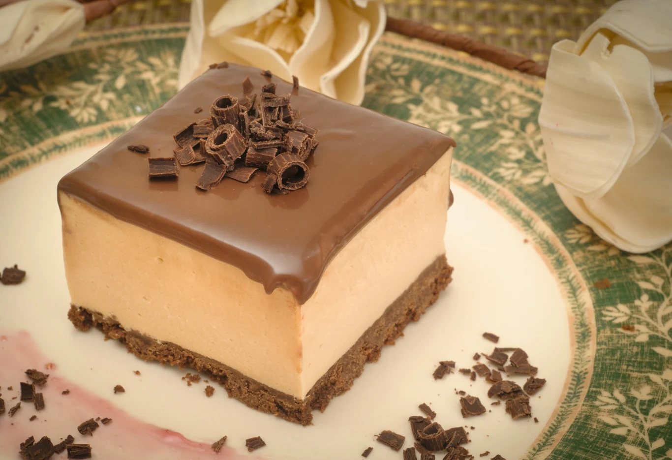 Ciasto Królową Pik udekoruj wiórkami czekoladowymi i wstaw do lodówki na kolejną godzinę. Podawaj na zimno.