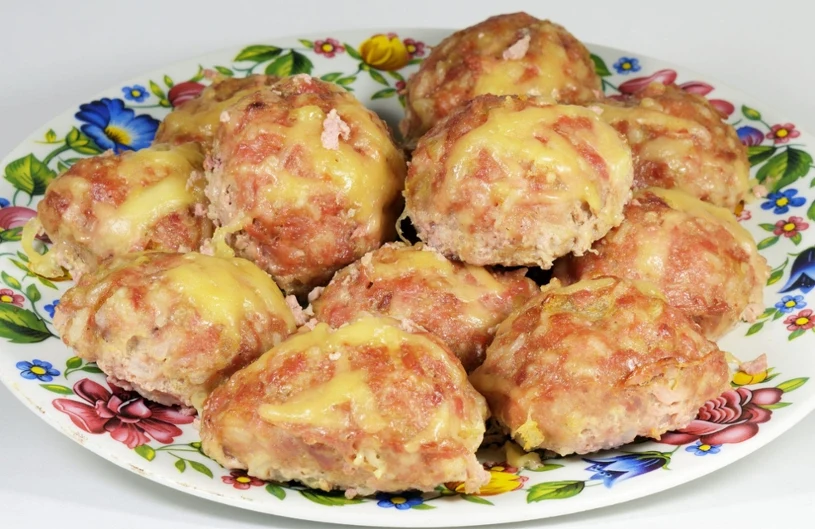 Z wyrobionego mięsa uformuj średniej wielkości kulki. Ułóż je na blaszce wyłożonej papierem do pieczenia, jedna obok drugiej. Na środku każdej kulki zrób delikatne wgłębienie. Umieść w nim po łyżce farszu. Wstaw pomyleńce do piekarnika rozgrzanego do 180 stopni Celsjusza na około 40 minut.