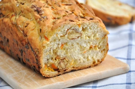 Chlebek jesienny to miękkie ciasto drożdżowe wzbogacone słodką marchewką i chrupiącymi orzechami włoskimi. Wspaniale syci i hamuje apetyt na dłużej. Idealnie sprawdzi się podczas chłodniejszych dni, dodając energii.