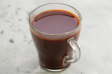 - Odstaw garnek z ognia, aby lekko ostygł. Po tym czasie zmiksuj blenderem całość na gładką masę. Jeśli chcesz uzyskać klarowny sok, przecedź miks przez sito lub gazę, wyciskając płyn. Jeśli jest za gęsty, dodaj trochę wody.