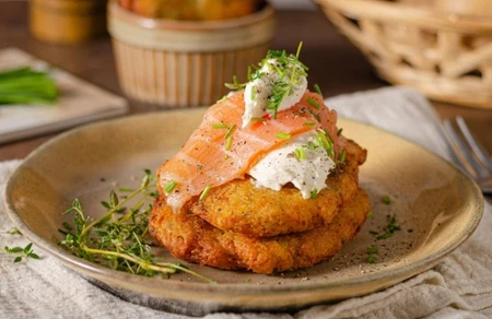 Domowe placki ziemniaczane to przepyszne danie, które można jeść na wiele sposobów. Jedni posypują je cukrem, inni podają z kwaśną śmietaną, są również miłośnicy sycących, mięsnych potraw, którzy serwują je z gulaszem. W poniższym artykule podpowiemy ci, jak zrobić placki ziemniaczane z łososiem i śmietaną, które świetnie sprawdzą się jako specjalne danie dla gości.