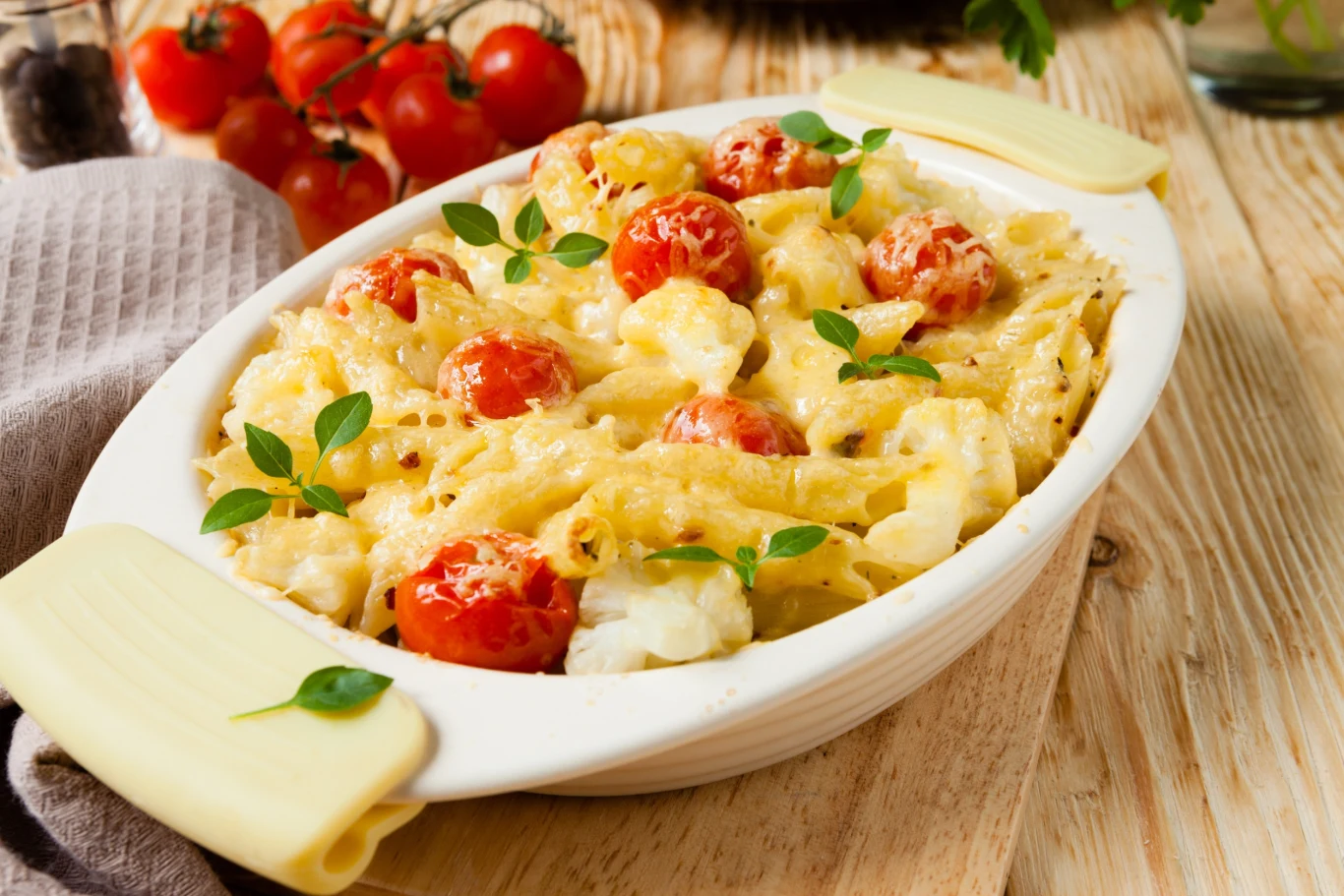 Zapiekanka z makaronu rurki jest prawdziwą ucztą dla podniebienia, łączącą delikatny smak kalafiora z aromatycznym sosem i serem. Kremowy sos beszamelowy, przygotowany na bazie śmietanki kremówki, masła, musztardy i gałki muszkatołowej nadaje mu wyjątkowej aksamitności i wyrazistego smaku. Danie będzie prawdziwą gratką dla miłośników bezmięsnych zapiekanek makaronowych.