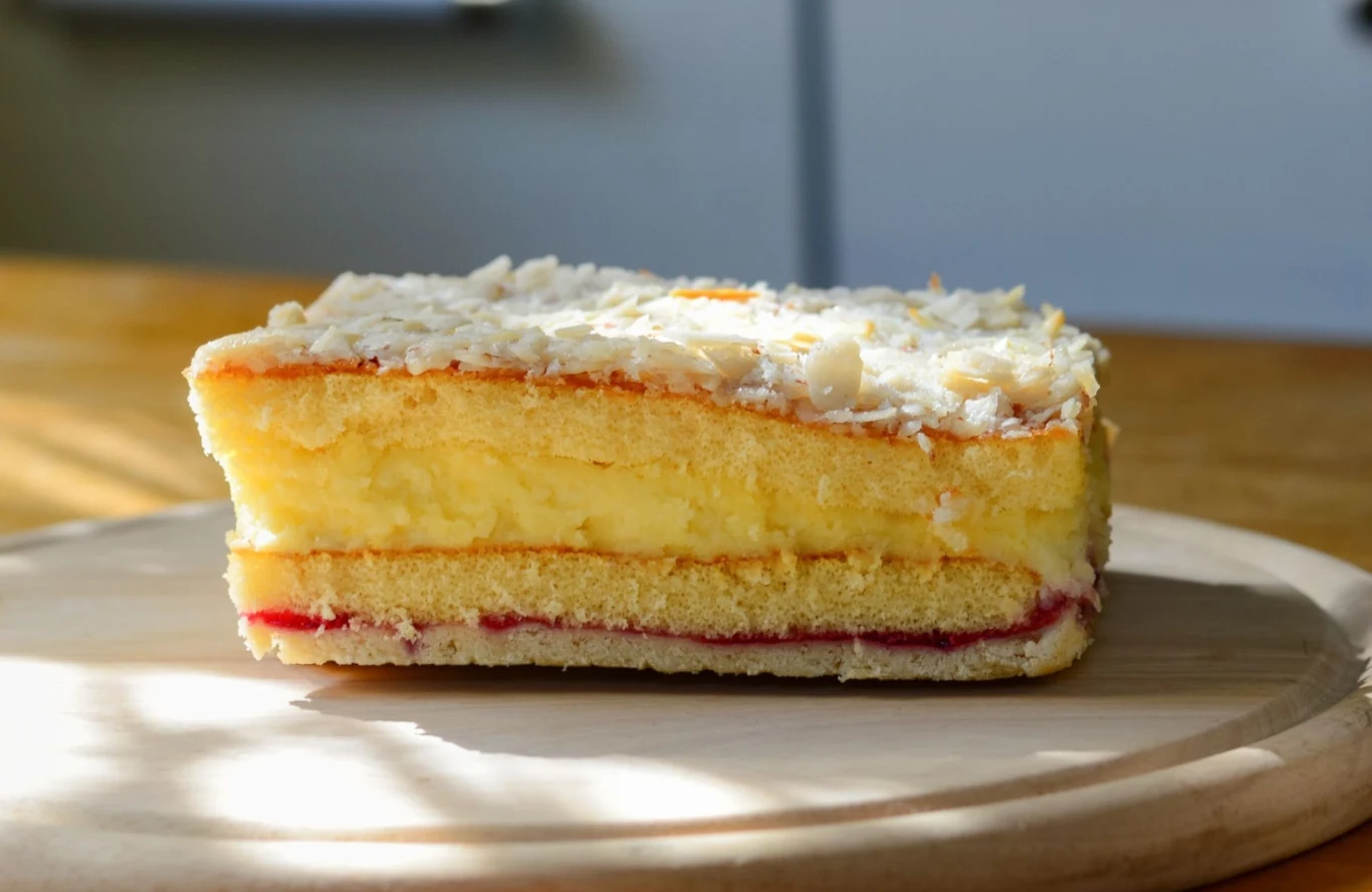 Ciasto Pani Domu to jeden z tych wypieków, który posmakuje zarówno małym, jak i dużym łasuchom. Idealnie sprawdzi się podczas wizyt gości, świetnie smakuje podane z kawą lub herbatą. Oprócz pysznego biszkoptu znajdziesz tu także krem na bazie masła, budyniu i serka mascarpone. Jedną z warstw, która kryje się w tym deserze, stanowi dżem, który doskonale przełamuje słodycz ciasta. Najlepiej sprawdzi się ten z czarnej porzeczki, jednak równie dobrze możesz użyć wiśniowego, agrestowego, lub malinowego. Poniżej znajdziesz przepis krok po kroku.