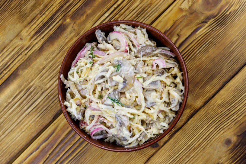 W wigilię stoły zazwyczaj uginają się od świątecznych dań. Mimo to wiele osób i tak postanawia przygotować sałatkę, w razie, gdyby któryś z domowników i gości miał ochotę na wytrawną przekąskę. Jeżeli też do nich należysz, koniecznie sprawdź nasz przepis na sałatkę z pieczarkami i selerem. Jest prosta, nie zawiera mięsa i zrobisz ją w kilkanaście minut.