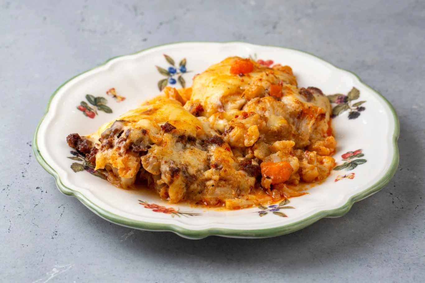 Natłuść naczynie żaroodporne. Na jego dno wsyp makaron. Zalej go sosem mięsnym, a następnie - śmietanowym. Wstaw do piekarnika nagrzanego do 180°C. Zapiekaj przez 30 minut.