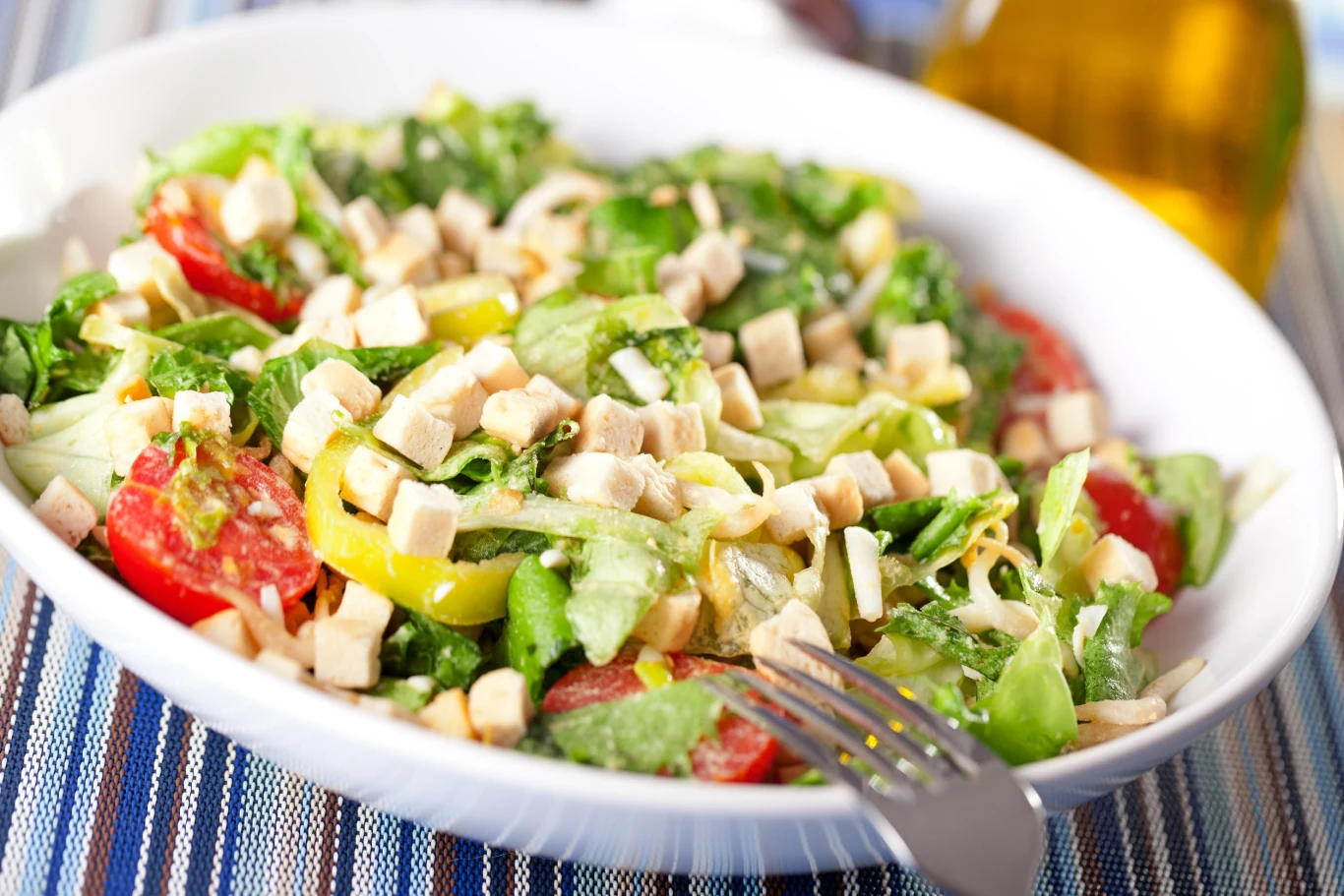 Resztki przechowuj w lodówce, w szczelnym pojemniku, przez maksymalnie 3 dni. Najlepiej posypuj grzankami tuż przed zaserwowaniem, gdyż nadmiernie przesiąkną dressingiem i stracą swoją chrupkość.